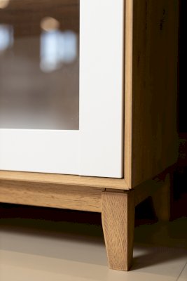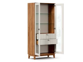 • За сборными распашными дверями со стеклом две стационарные горизонтальные перегородки и две съемные стеклополки.