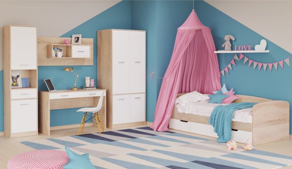 Пенал служит для хранения учебников, тетрадей и других письменных принадлежностей. В нем достаточно места, чтобы хранить не только предметы для учебы, но и одежду. Выдвижной ящик – отличное место для нужных мелочей, а в открытой полке можно поместить предметы декора или фоторамки. Белые фасады зрительно увеличивают пространство, добавляют света в комнату. Идеально компонуется со всеми модулями системы Стелс. Мебель выполнена из высококачественных экологичных материалов.