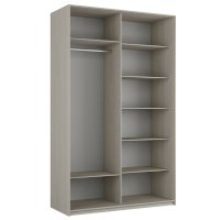 Серия «Прайм» отличается доступностью и функциональностью Навесные двери и лаконичная отделка фасадов создают прогрессивный дизайн. Подойдет тем, кто любит компактную и изящную мебель. Алюминиевые ручки и верхний ходовой профиль обеспечивают легкость и прочность конструкции. Многолетняя безупречная работа благодаря высококачественной немецкой фурнитуре Hettich. Прочная ПВХ-кромка толщиной до 1 мм защищает края от сколов и повреждений. Плавный ход дверей обеспечивает надежная система Hettich Top Line M. Дополнительно можно установить доводчики. Снаружи нет заглушек и винтов благодаря стяжечной системе крепления полок на флипперах, а корпус усилен эксцентриковыми стяжками. Навесные двери скрывают раздвижной механизм от глаз. Они надежно удерживаются в направляющих и не соскакивают. Каждая дверь поделена на 4 секции Секции расставляются в произвольном порядке, создавая новый дизайн фасада.