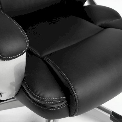 Высокая спинка с широким мягким подголовником и боковой поддержкой выводят эргономику кресла на новый уровень. Обивка выполнена из экокожи высокого качества - современного материала на хлопковой основе. Благодаря тканой основе и пористому полиуретану экокожа отлично пропускает воздух, что положительным образом сказывается на комфорте во время эксплуатации. Материал износоустойчив - кресло сохранит привлекательный внешний вид в течение длительного времени. Наличие перфорации в центральной части кресла обеспечивает дополнительную циркуляцию воздуха.
