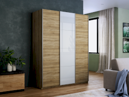 Шкаф-купе 3-х дверный Прайм ДСП/Белое стекло/ДСП 1800х2300х570 мм