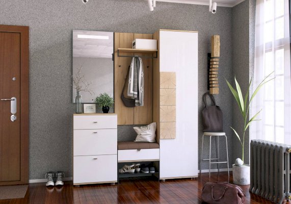 • Высота ниши со штангой под длинную одежду 1584 мм. Так же под верхней полкой 3 крючка для одежды