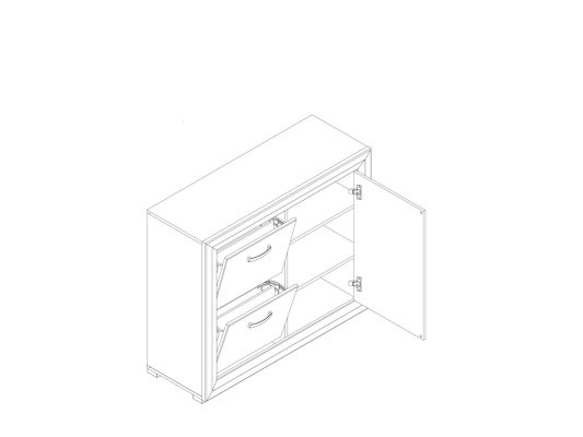 • Слева: 2-е откидные двери, в которых расположены однорядные кассеты для обуви;