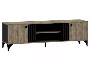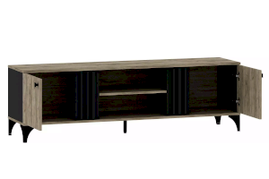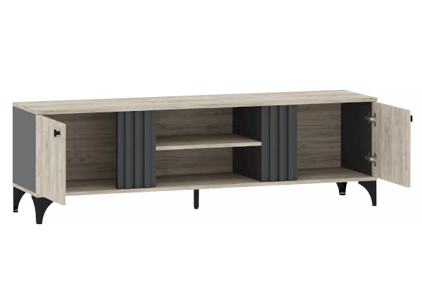 Тумба оснащена двумя открытыми нишами, в которых можно расположить аудио- и видеоаппаратуру, а также двумя полками за распашными дверками с системой доводчиков, благодаря которым дверки закрывается плавно и бесшумно, а высокие опоры обеспечивают быстрый и легкий доступ во время уборки.