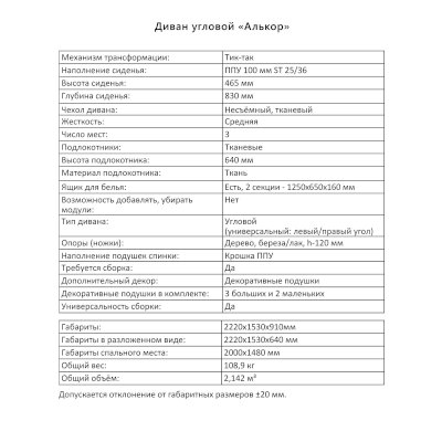 Угловой диван Алькор (Аквилон)