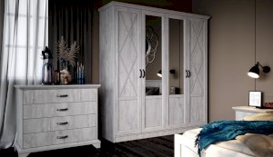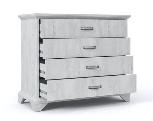 Вместительный комод Лорена в стиле неоклассика создает уютную атмосферу в интерьере гостиной или спальни. Белые фасады с фактурой и рисунком натурального дерева наполняют комнату светом, делают ее просторнее. Металлические ручки цвета состаренного серебра придают изысканность, а фигурные ножки и декоративный профиль крышки подчеркивают стилистику коллекции. В выдвижных ящиках на телескопических направляющих удобно хранить любые предметы одежды и личные вещи. Выполнен из экологичных материалов.