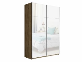 Шкаф-купе 2-х дверный Прайм Белое стекло/Белое стекло 1400х2300х570 мм Крафт табачный
