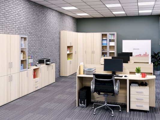 Стол с просторной столешницей будет гармонично смотрится в офисе и в домашней обстановке.