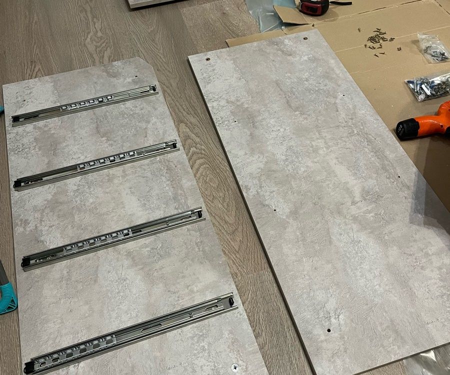 Легко и точно собирался, фурнитура хоть и бюджетная, но всё же Боярд, от направляшек до ручек. ящики рассчитаны под нормальную нагрузку.