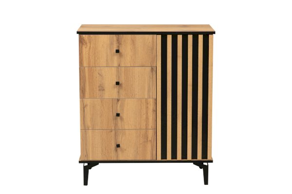 Комод – немного меньше модели 51.04, но сохранил тот же функционал. У него есть выдвижные ящики и полки для вещей за распашной дверцей.