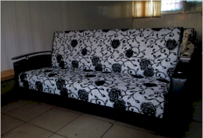 Это простой и удобный диван - кровать с механизмом трансформации "книжка" и вместительным ящиком для белья.