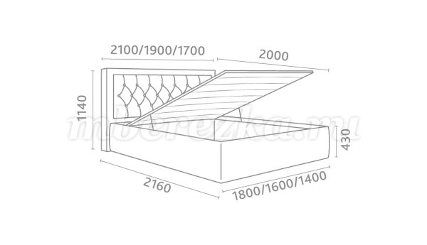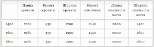 Кровать доступна в трех размерах:  1400, 1600 и 1800 мм.