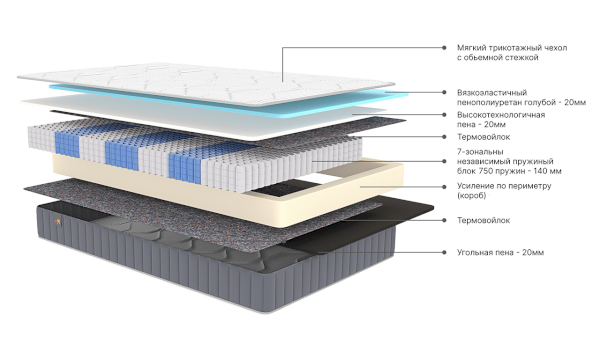 Наполнитель: ППУ, независимый пружинный блок, термовойлок