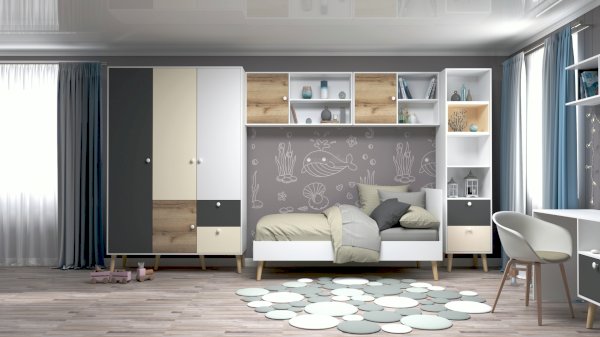 Цвет бежевый / белый / дуб (сонома, молочный, феррара) / серый