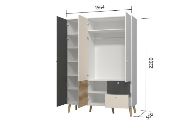 Трехстворчатый шкаф Morty ШК07-1564 (Марибель)