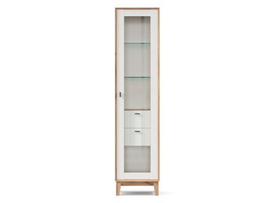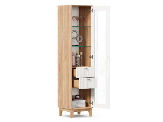 • За сборными распашными дверями со стеклом две стационарные горизонтальные перегородки и две съемные стеклополки.