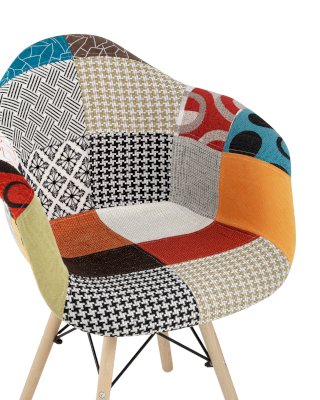 Кресло DSW - это комфортный и стильный предмет интерьера. Прочный каркас из полипропилена обтянут яркой мебельной тканью в стиле пэчворк. Ножки изготовлены из массива бука, надежную конструкцию дополняют металлические крепления, по которым легко узнается культовый дизайн самых популярных стульев в мире.